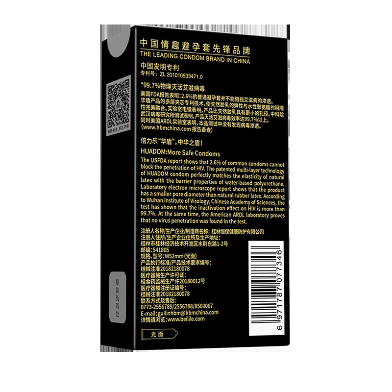 倍力乐避孕套华盾专利复合型高阻隔99.7%物理灭活艾滋病毒12711