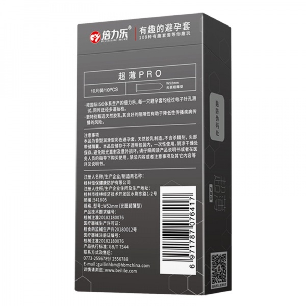 倍力乐安全套避孕套超薄37°C灰10只/W52光面计生用品成人用品