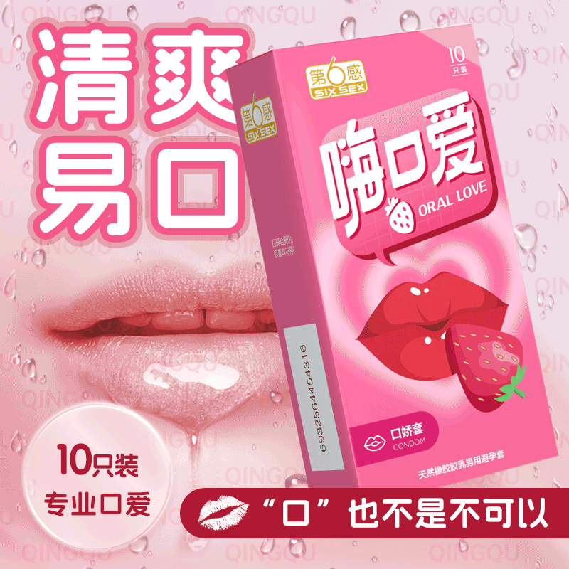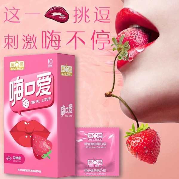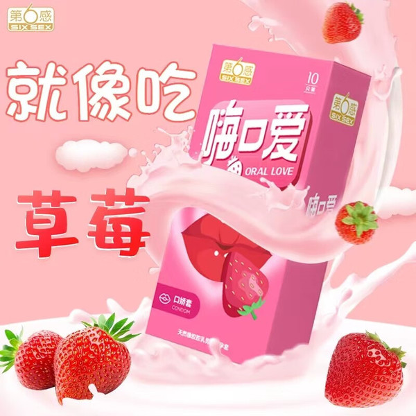 第六感避孕套10只装嗨口爱套草莓味安全套房事计生夫妻情趣用品酒店热销夫妻情趣用品