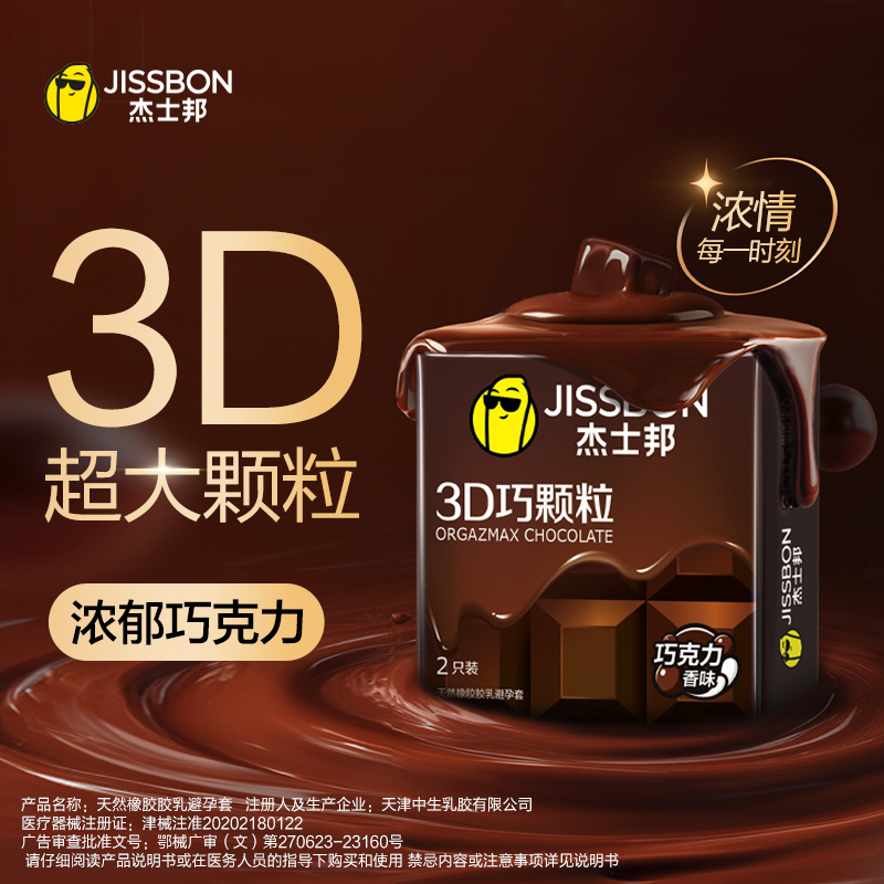 【美团必备】杰士邦3D巧颗粒2只/8只/12只装避孕套男用巧克力香味安全套房事计生夫妻情趣用品酒店热销房事专用成人情趣性用品